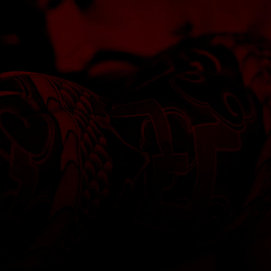 Light olive skin tone, Salt and peppered hair with grey at temples. Hair is worn in neat ponytail at crown, or straightened to shoulder-length. Thick hair, no wave. Dark brown eyes. Build is slender but very toned, broad in the shoulders. transtibial amputation, Hypertrophic scar from Shimada crest branding on right shoulder, large tattoo extending from left pectoral down to his wrist. Tattoo is mirrored on his left hip, but is cut off and scarred on the superior tibia due to cybernetics. Scarring throughout the body.